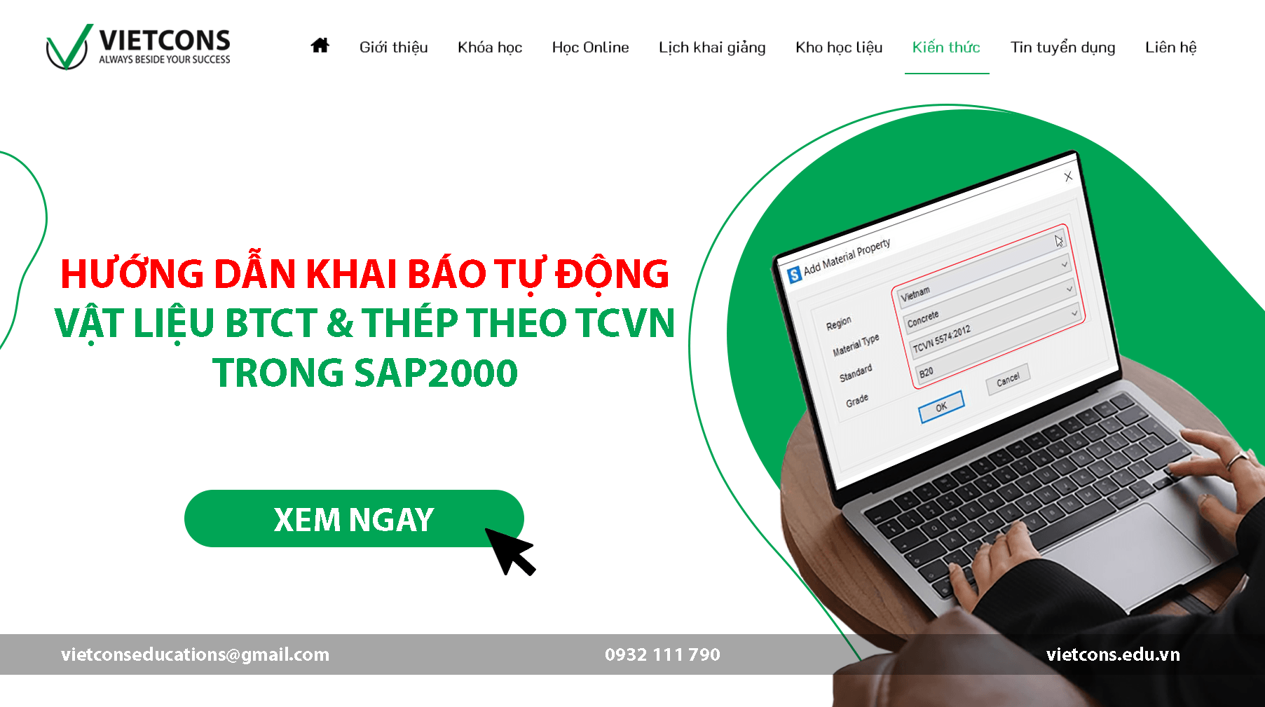 Trong quá trình phân tích và thiết kế kết cấu với SAP2000, việc khai báo đặc trưng vật liệu chính xác theo Tiêu chuẩn Việt Nam (TCVN) là bước cực kỳ quan trọng, đảm bảo độ tin cậy của kết quả tính toán. Bài viết này hướng dẫn chi tiết cách tự động khai báo vật liệu Bê tông cốt thép (BTCT) và Thép kết cấu trong phần mềm SAP2000.v22 (và các phiên bản tương đương) theo các tiêu chuẩn TCVN hiện hành.