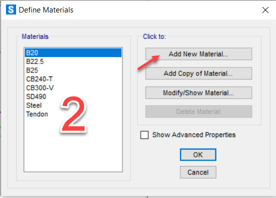Vào: Define > Material Properties... → Add New Material...