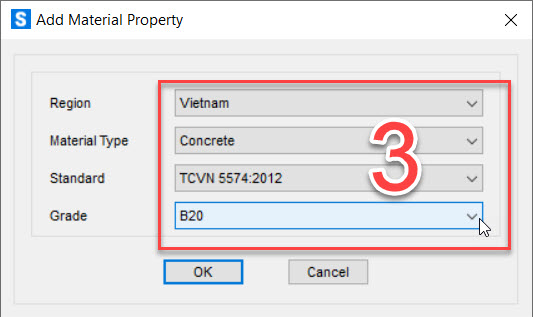 2. Khai báo vật liệu bê tông: