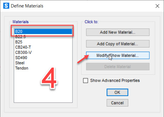 3. Khai báo vật liệu cốt thép: