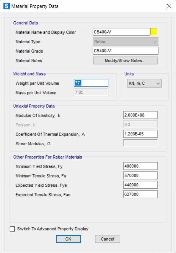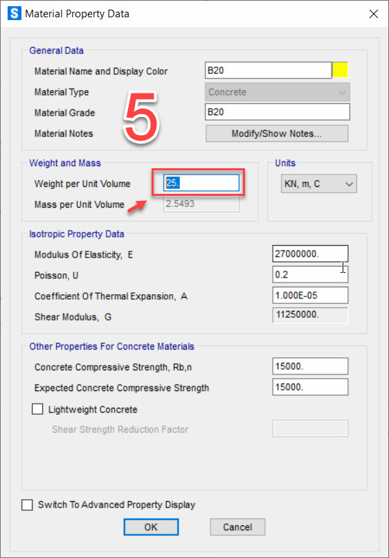 Bảng chú giải các thông số vật liệu trong SAP2000