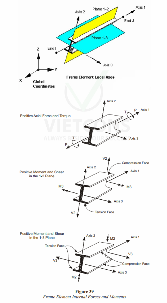 1. Chú giải nội lực trong phần tử thanh (Frame)